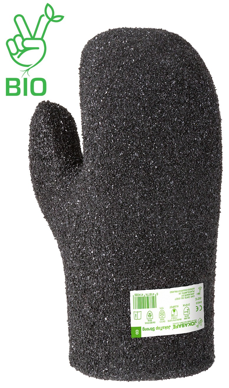 Tilava ja joustava Jokasafe JokaTop Strong kohdevahvistettu vinyylisuojarukkanen, jossa on miellyttävä ja lämmin puuvillavuori. Rouhepinnoitus antaa kestävyyttä ja hyvän pidon raskaisiin töihin. Rukkasta voidaan käyttää myös sisäkäsineen kanssa. JokaTop Strong rukkasessa on osittainen Kevlar®-vahvistus etusormen ja peukalon välissä. Käsine on kehitetty yhdessä teollisuuden ammattilaisten kanssa.